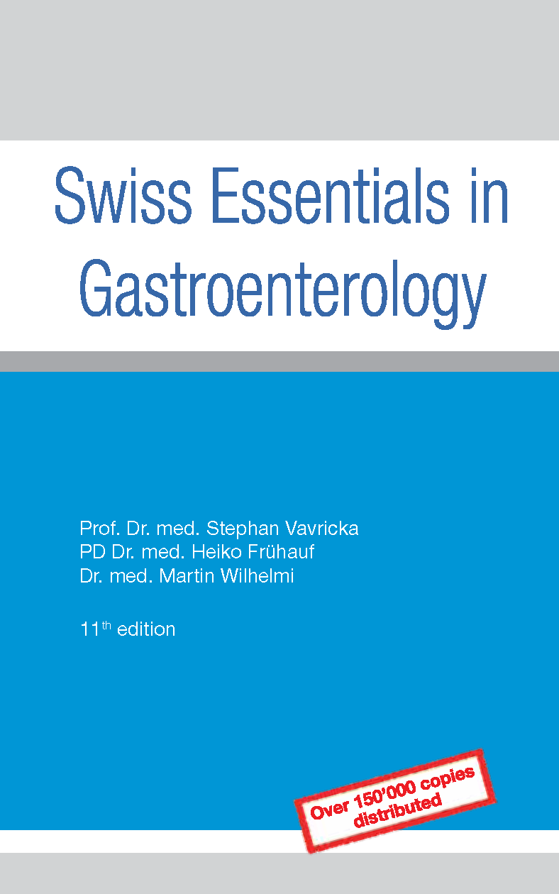 "Swiss Essentials in Gastroenterology" is a medical pocket guide that summarizes a cross-section of relevant topics in gastroenterology. At more than 500 pages, the guide is very comprehensive and is highly regarded in the gastroenterological community and is also distributed internationally. The 11th edition was published this year.
